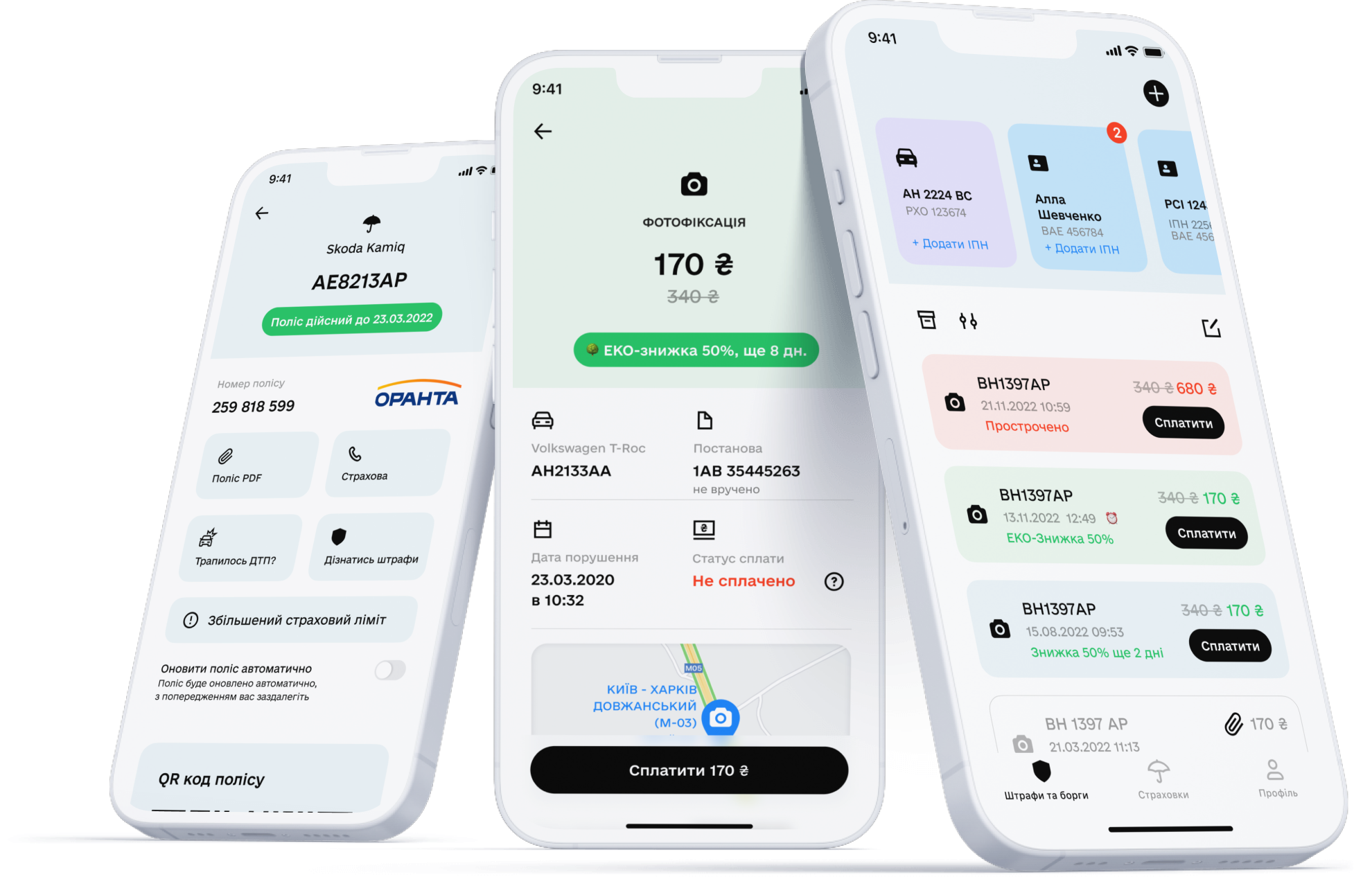 Отримуй нагадування, будь у курсі найвигідніших пропозицій, миттєво перевіряй наявність страхування, штрафів і боргів та сплачуй просто зі смартфона.